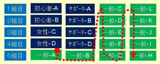 1 スコアの良い人から並べ、各組を平均スコアーとした組合せ